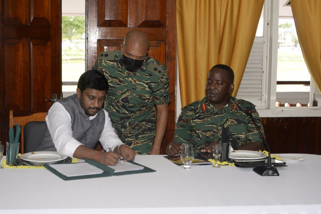 Texila American University, Founder and President Mr. Saju Bhaskar and Guyana Defence Force, Chief of Staff, Mr. Brigadier Godfrey Bess signs the MoU that aims at bolstering learning opportunities for defence personnel.